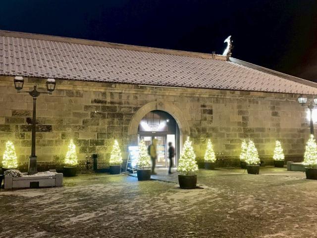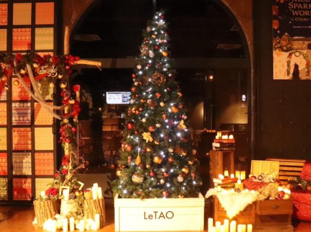 店内と入口前には、クリスマスツリーも設置。温かみのあるオーナメントやイルミネーションが冬らしい雰囲気をつくり、小樽らしいロマンチックな景色を楽しめますよ。