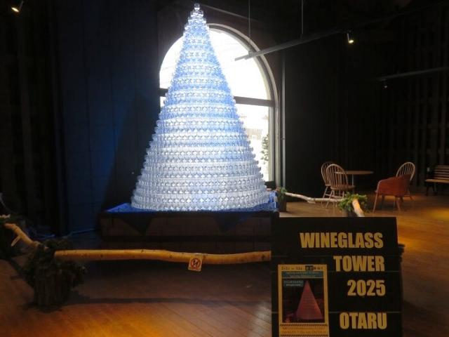小樽運河すぐそばにある「ルタオ運河プラザ店」で、地元の高校生たちと一緒に制作した高さ3mのワイングラスタワーの展示がスタートしています。