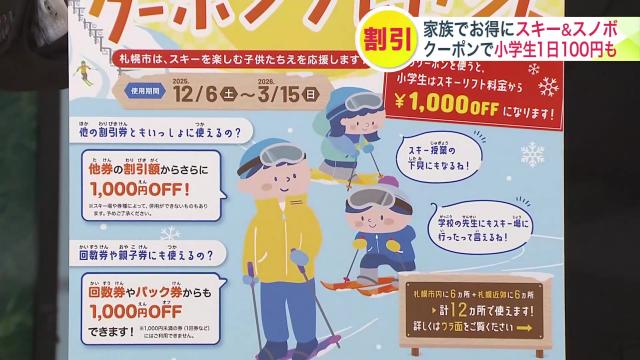 さらに、札幌の小学生に配られたリフト券が1,000円安くなるクーポンも。指定のスキー場に持って行くと、1回限り使用できます。