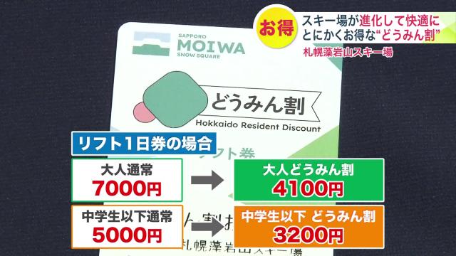 リフト1日券の場合、通常の大人料金が1日7000円のところ「どうみん割」だと4100円。中学生以下は通常5000円のところ3200円に。