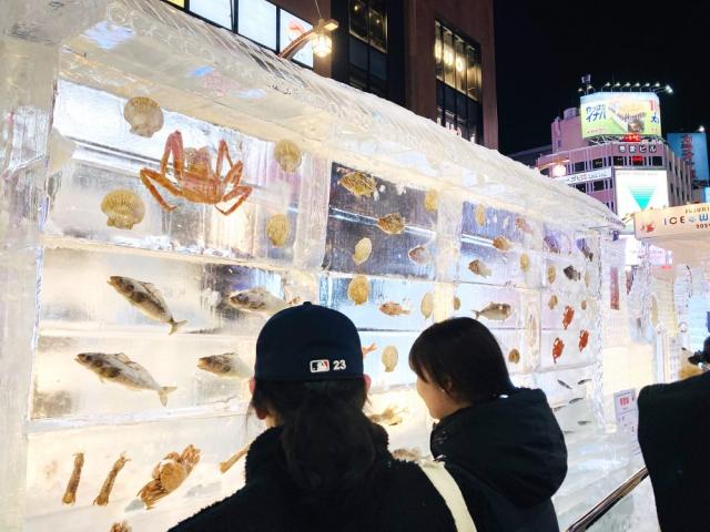 映える写真を撮りたいなら、恒例の恒例の「魚入り氷像(魚氷)」は必見!