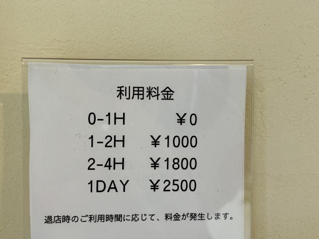 お店を利用するには、入場料500円+ワンドリンク以上の注文が必要です。 最初の1時間は追加料金なしで利用でき、1時間を超えると滞在時間に応じて利用料金が発生するシステムとなっています。