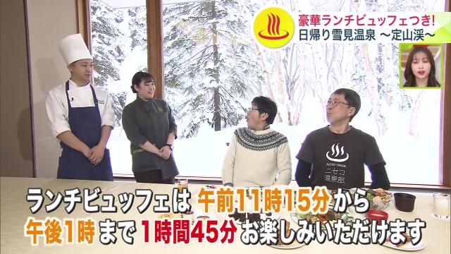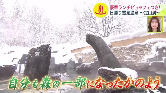 雪化粧を施した定山渓の山が目の前に迫り、自分も森の一部になったかのような気分が堪能できます。