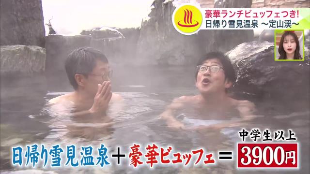 日帰り温泉と豪華ビュッフェがセットになり、中学生以上3,900円で楽しめるコスパのよさに驚きます。