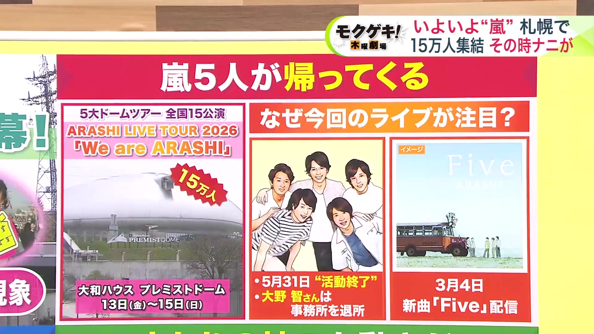 嵐5人での活動は5月31日の東京ドーム公演で終了ということで、このツアーは26年半の集大成。経済に与える影響力も凄まじいものになっています。