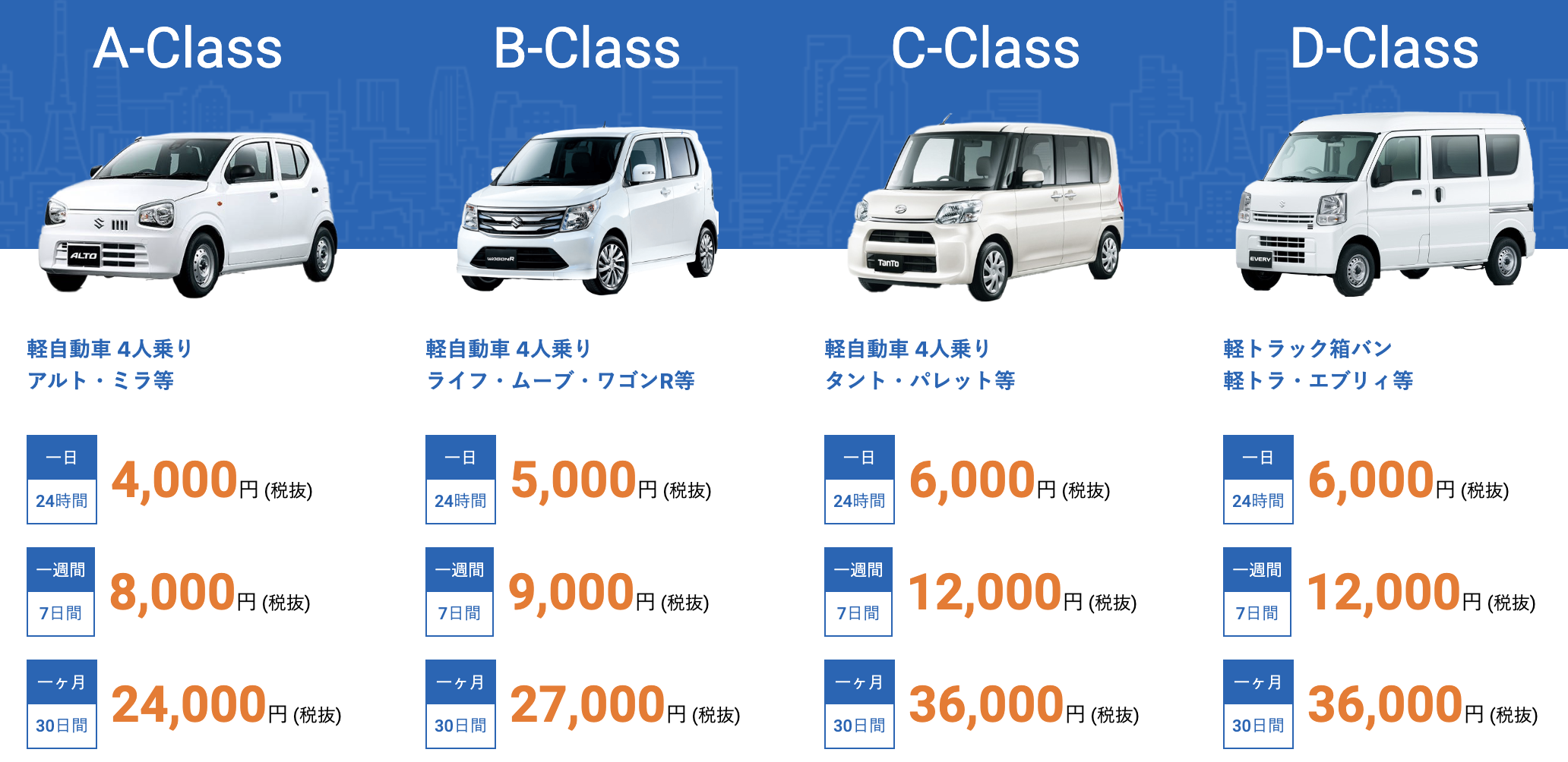 軽自動車を中心とした格安料金で、日本トップクラスとうたうコストパフォーマンスが特徴です。