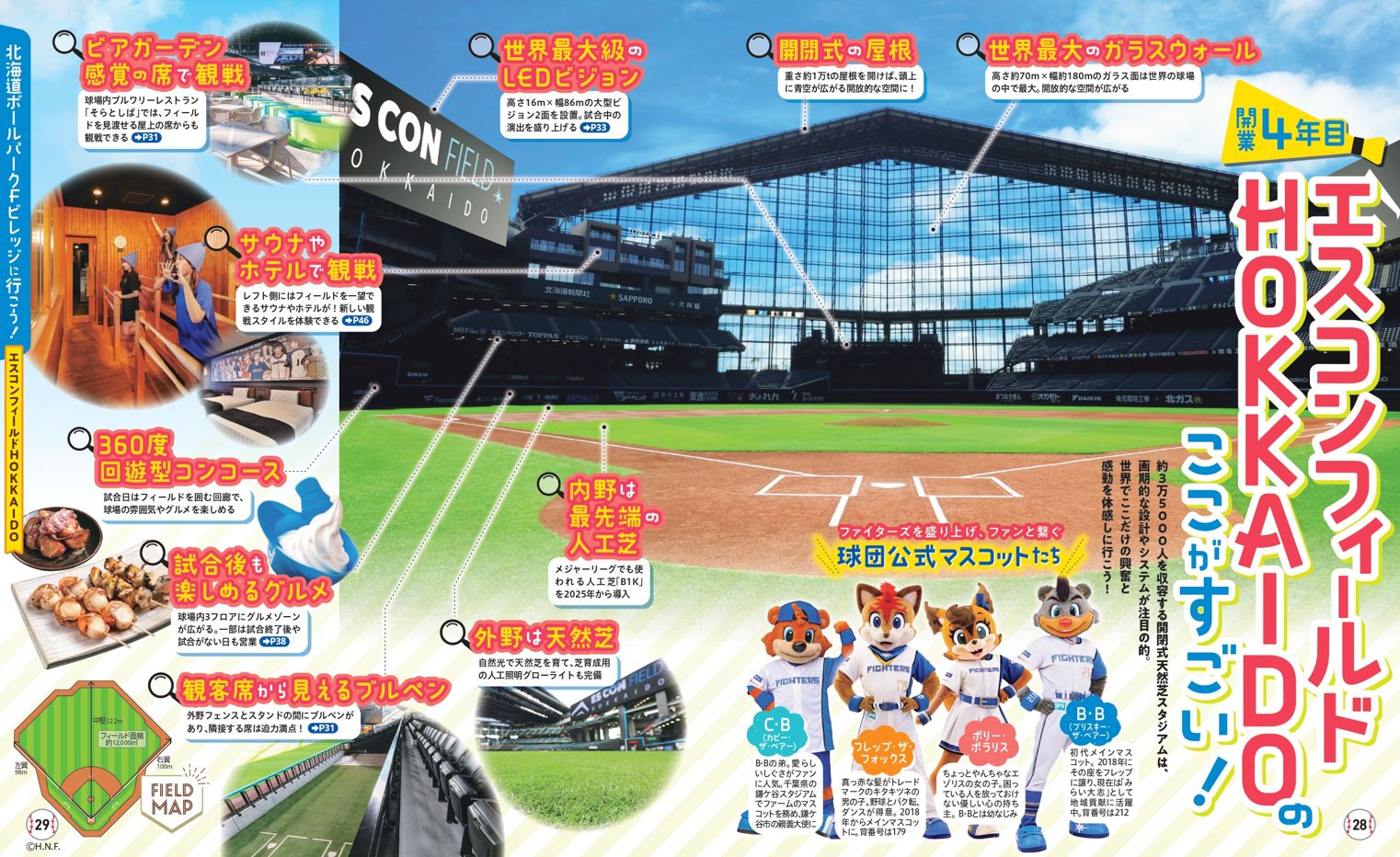 観戦初心者からリピーターまで役立つ、エスコンフィールドHOKKAIDOの座席ガイドとグルメガイドも掲載されています。