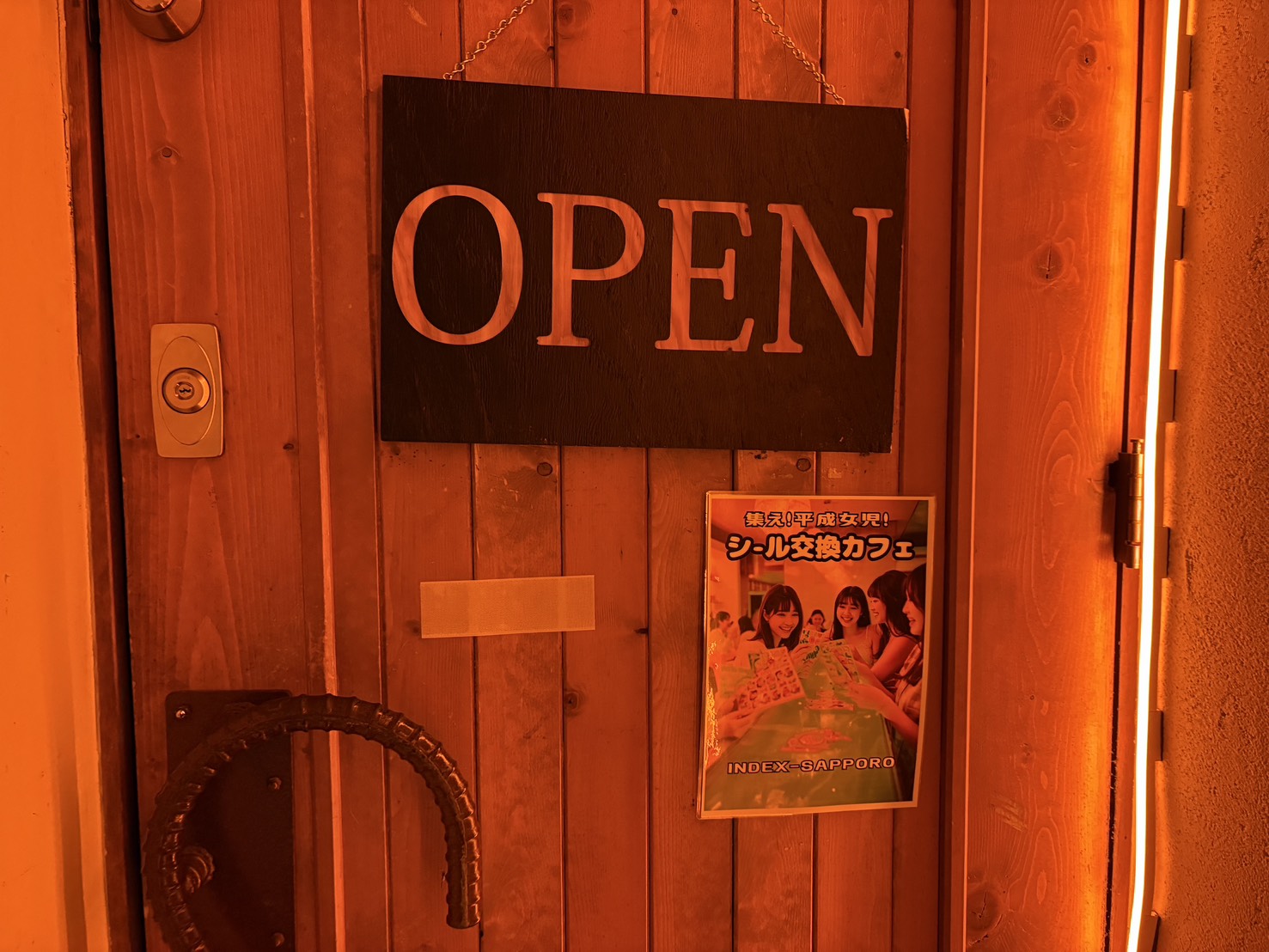 すすきのにあるバー「INDEX-SAPPORO」。2025年12月から、週に1回シール交換カフェとして営業しています。入場料は、ワンドリンク制で1人500円。