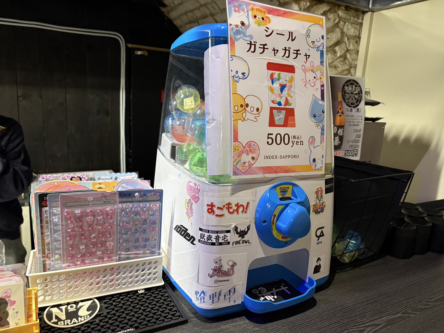 また、1回500円で回せるシールガチャも大人気。運がよければボンボンドロップや、そのほかの人気シールが当たることもあります。毎回好評で、途中でカプセルを補充することもあるのだとか。