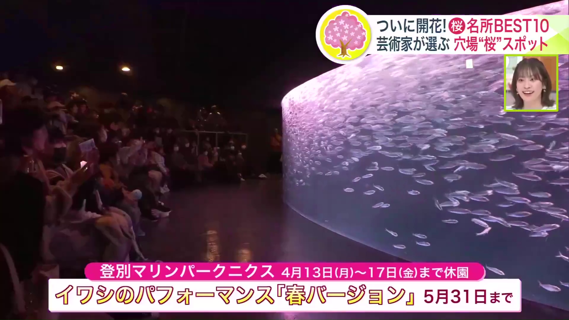 さらに、登別で合わせてみたい桜が登別マリンパークニクスで開催中の「イワシのパフォーマンス『春バージョン』」(※4月13日~17日まで休園/5月31日まで)